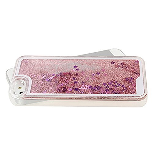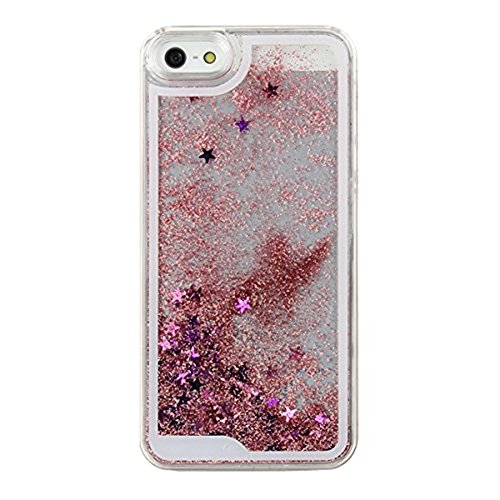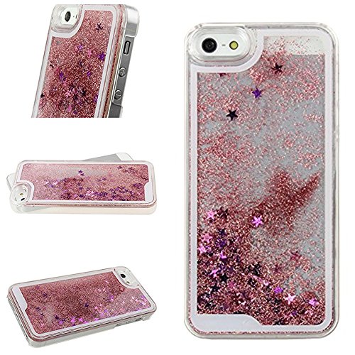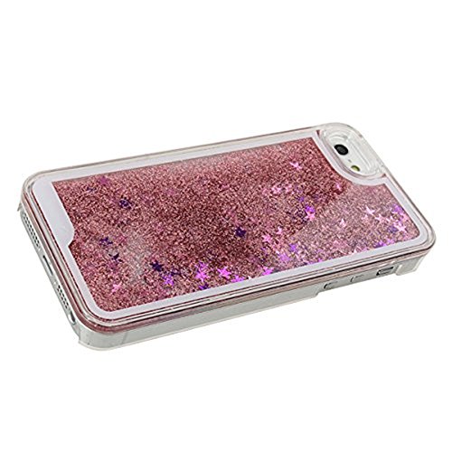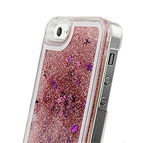Gravydeals iPhone 4S Case, Shiny Flowing Glitter Stars Shaped Bling Quicksand Liquid Case Transparent Hard Protective Back Case Cover Shell for Apple iPhone 4 4S 4G (Stars/Pink)