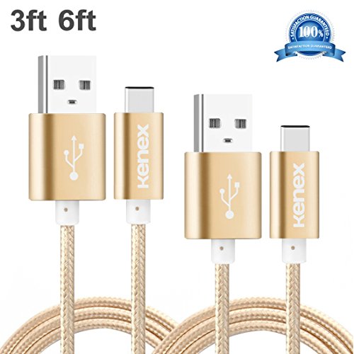 Includes 2x Kenex® Gold 3 / 6ft USB 3.1 Braided Type C to USB 3.0 Standard Charging Cable for USB Type A Male Cable for Apple New MacBook, Chromebook Pixel, Nokia N1 and other Type-C devices
