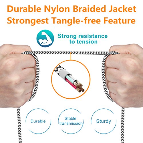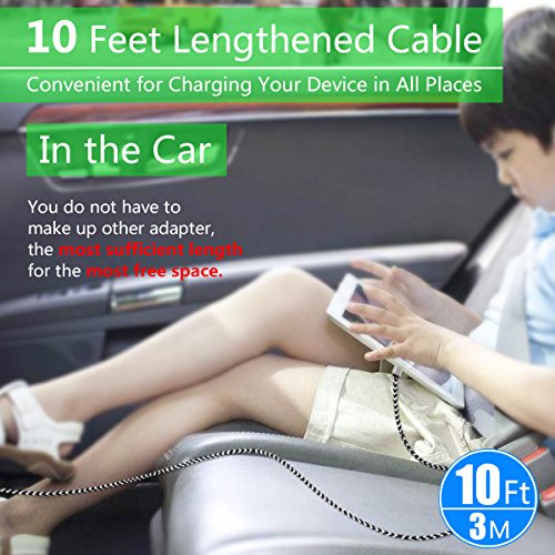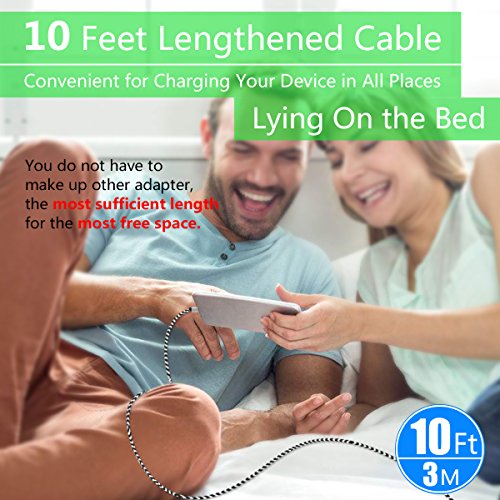 3. Reliable Quality: Coved with Durable Nylon Braided Jacket, which has heat resistant, excellent wear resistance, Strongest Tangle-Free features. The 10ft / 3m extension cable offers longer length and cooler than the original device cables and the main advantage is that the copper core of the USB lighting cable is 20% thicker than the average, this means that our Micro USB charging cables have a lifetime of over 5000 times up to 4X longer than average and a strict quality control ensures that the product is durable.
