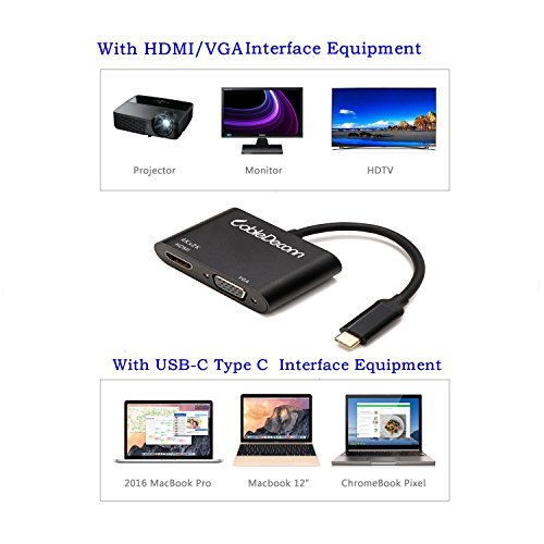 it is strongly recommended to use a short 5.9-foot HDMI / VGA cable to connect the display. Hold this CableDeconn USB-C adapter with your laptop while you are traveling to connect to virtually any TV or projector, amazing picture quality with support for UHD 4K, high resolution Supported: max. HDMI resolution up to 3840x2160 @ 30Hz, VGA up to 1920x1080 @ 60Hz