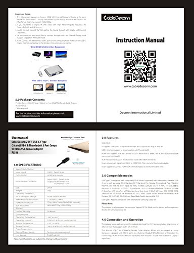 What you get: 1 * CableDeconn Multiport Cable converter from USB C to HDMI / VGA, 18 -Warranty and friendly customer service